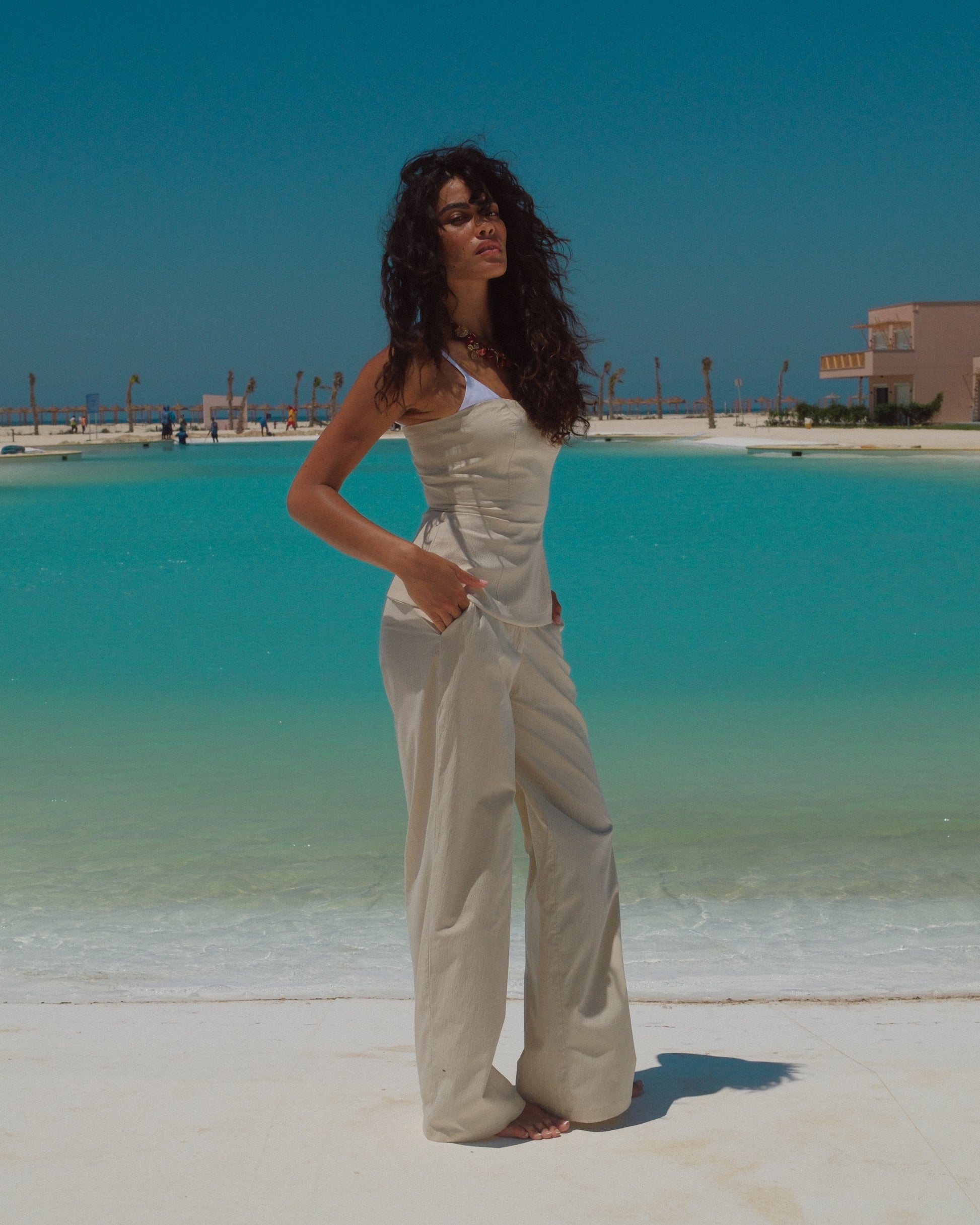 • High-waisted wide-leg trousers